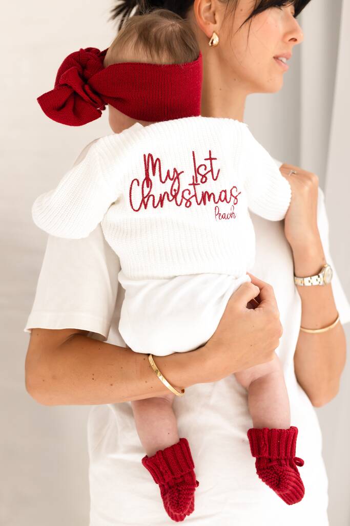 My First Christmas Embroidered Personalised New Baby Knitted Cardigan