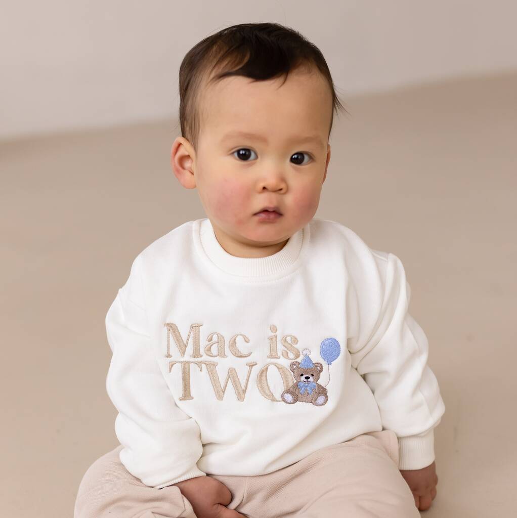 Personalised Embroidered Bear Birthday Sweatshirt Ages One To Seven