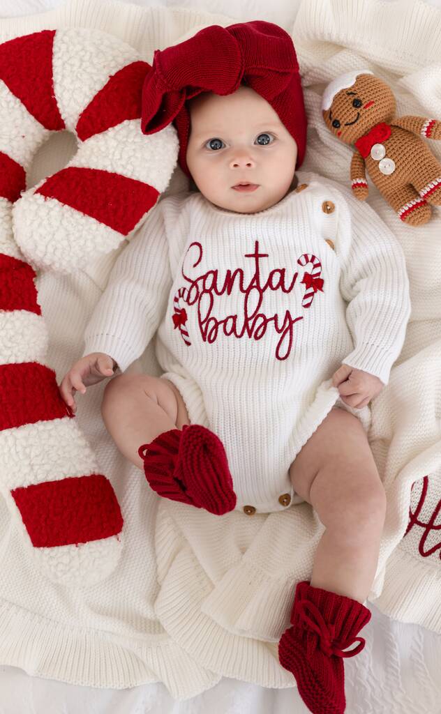 Santa Baby Christmas Embroidered Baby Knitted Romper
