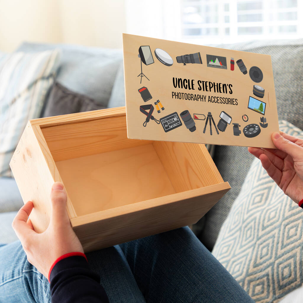 Personalised Photography Accessories Storage Box With Sliding Lid