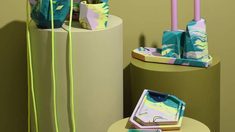 MissHandled (https://misshandled.co.uk/) is an independent Manchester-based homeware brand which uses jesmonite to create uniquely stunning geometric pieces. Although each MissHandled piece is completely bespoke, the brand is instantly recognisable and works with an unmistakable synergy. Playing with bright colour palettes and a distinct marble effect, the pieces are eye-catching, timeless yet effortlessly modern.
