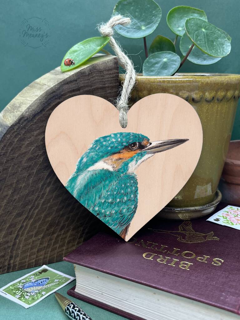 Kingfisher Wooden Hanging Heart Decoration