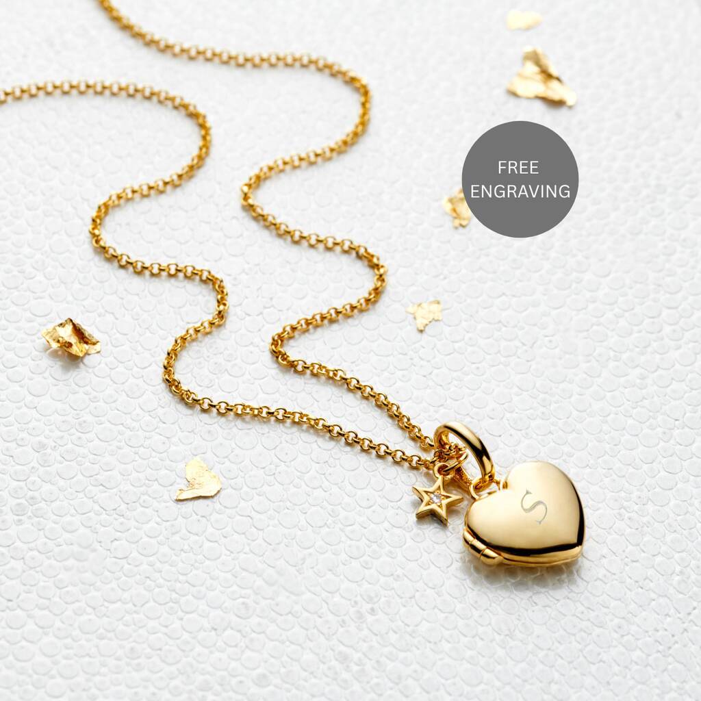 Personalised Small Heart Diamond Locket Necklace Gold Plated – Christening, Birthday Or Flower Girl Gift