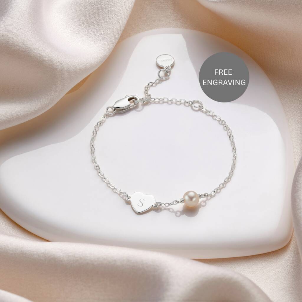 Personalised Sterling First Pearl Heart Bracelet – Christening, Birthday Or Flower Girl Gift