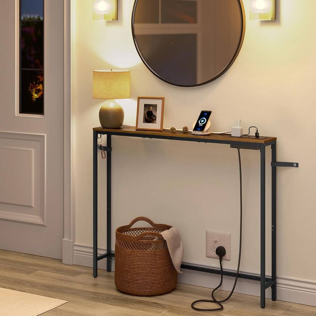 Console Table Slim Sofa Table With Charging Station