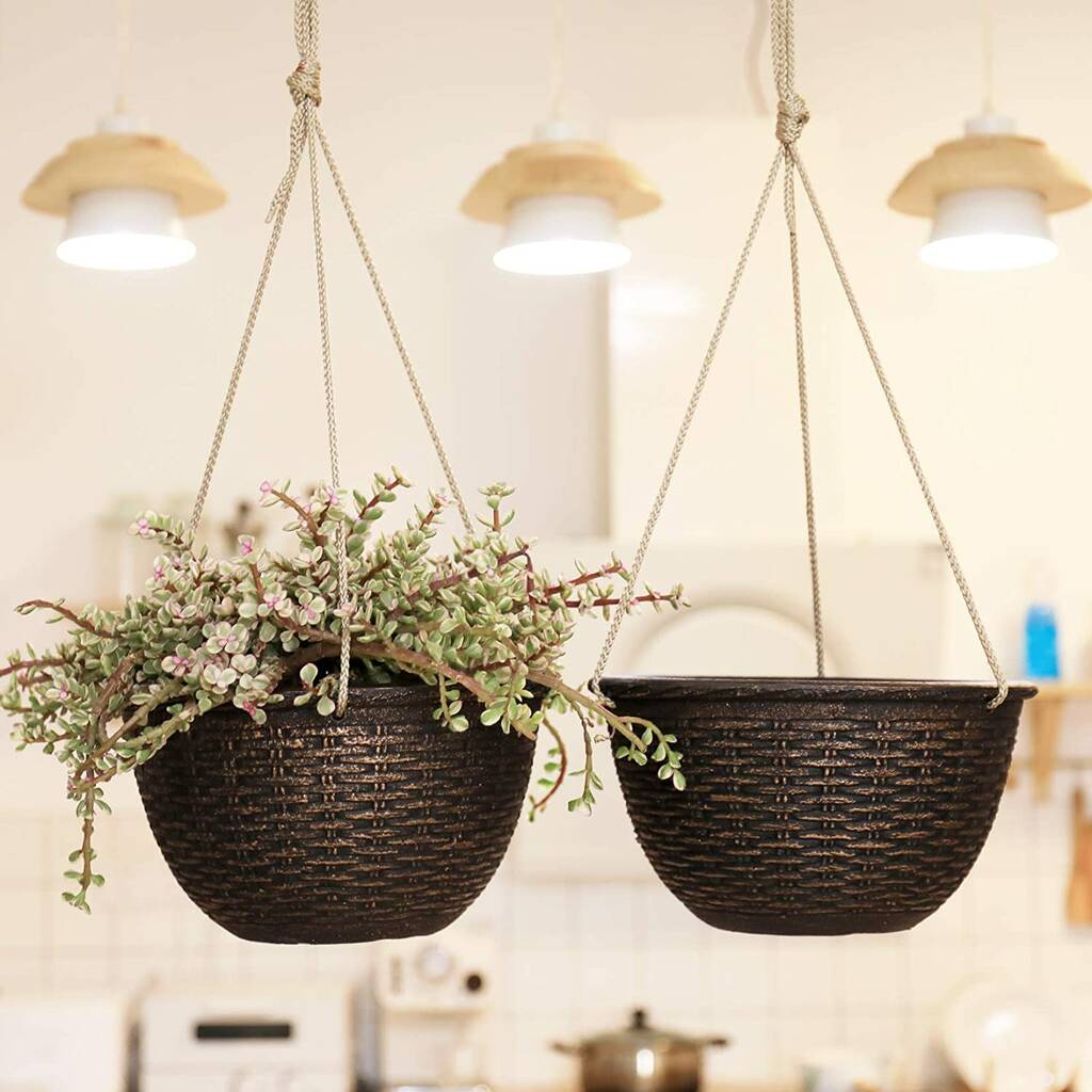 Pack Of Two Hanging Flower Plant Pot Weave Pattern