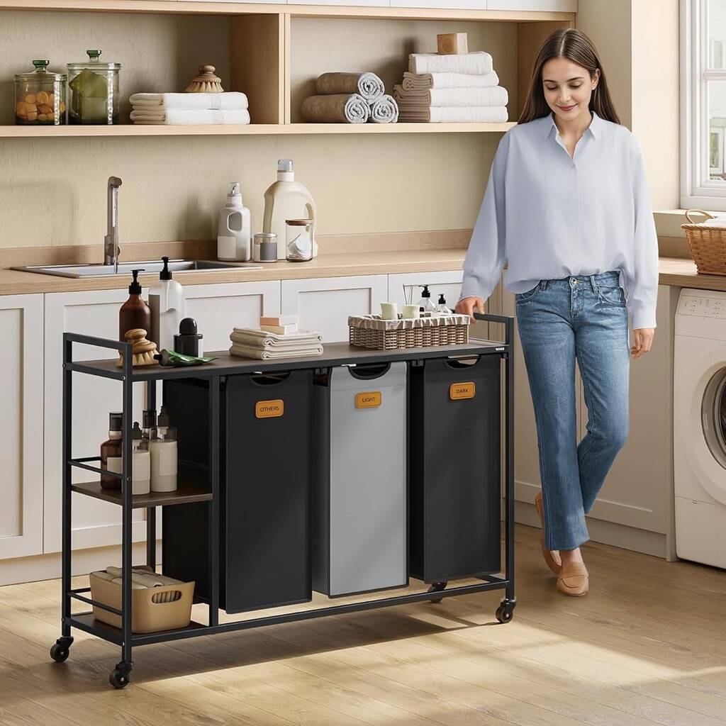 Rolling Laundry Sorter With Shelves And Labels