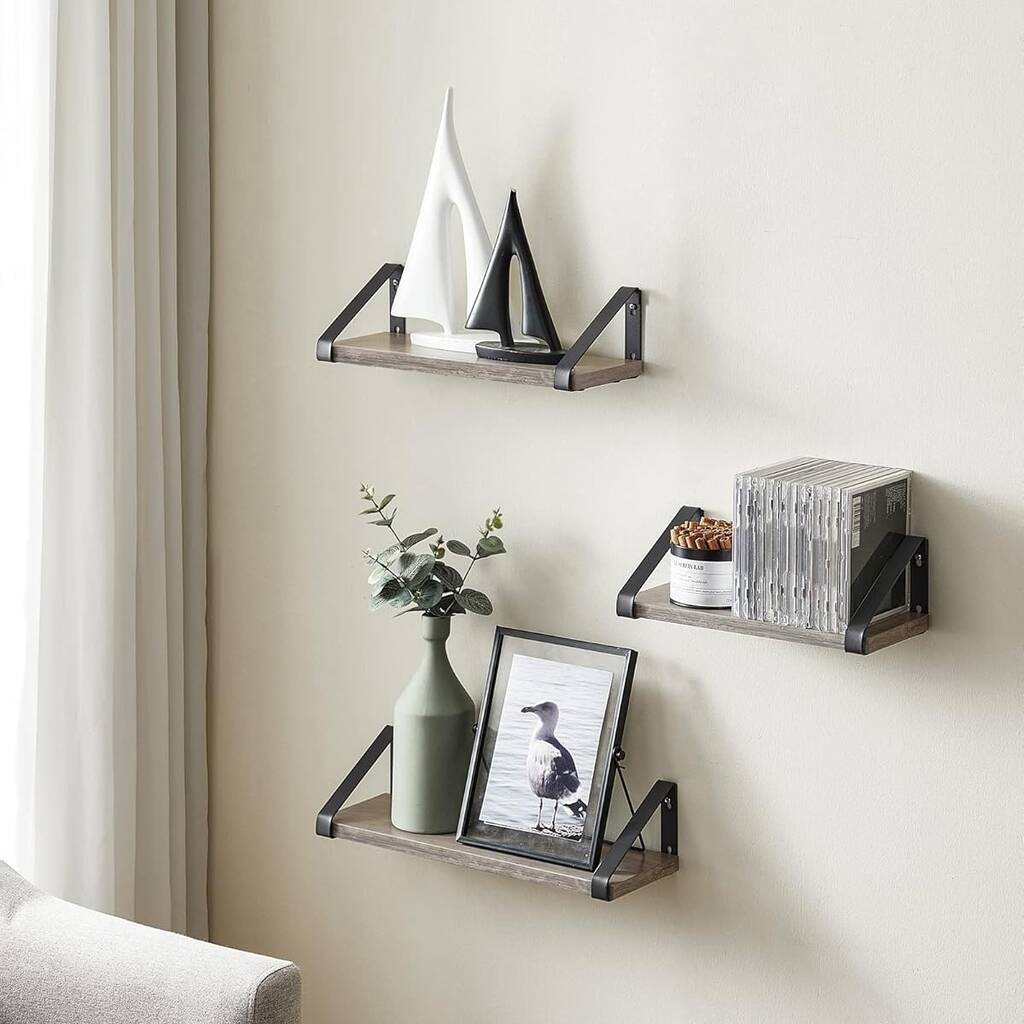 Set Of Three Floating Wall Shelves With Dual Mounting