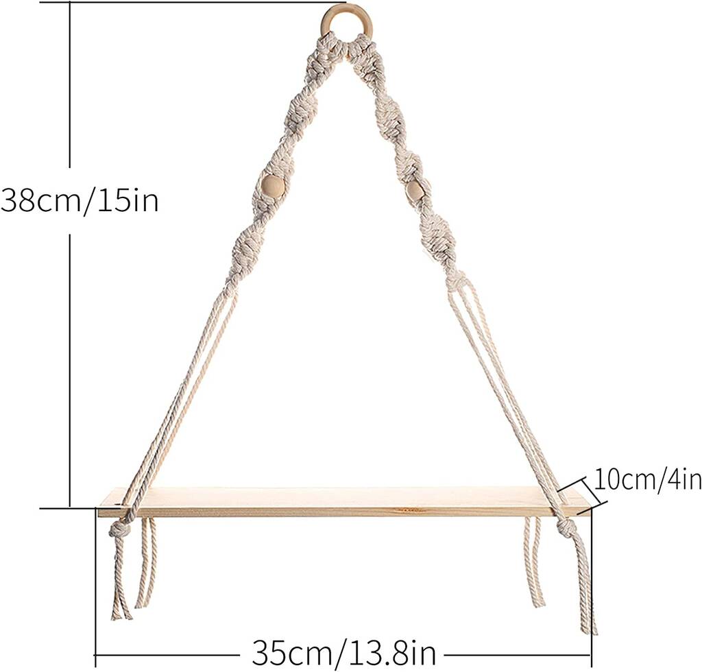 - HIGH QUALITY MATERIAL: Our plant hangers are made of cotton rope and wooden shelf that are enough strong and durable. The Solid Wood Hanging Shelf Planters is perfect for displaying your lovely plants, simple and bohemian style, adding greener to your hall or room.