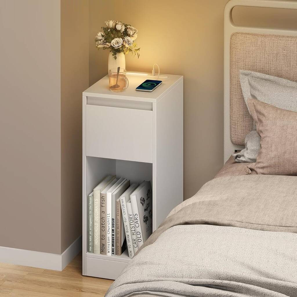 Slim Bedside Table Charging Station LED