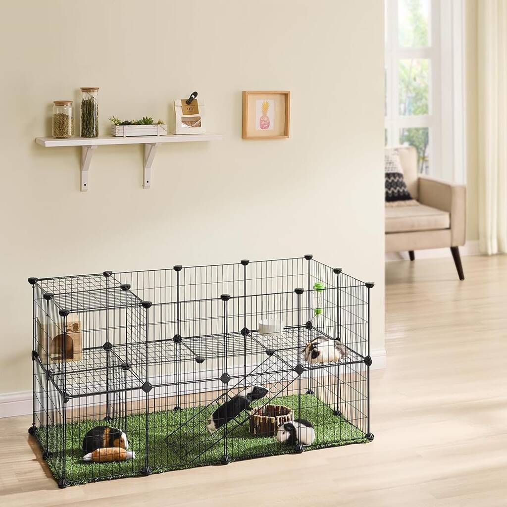 2-Floor Metal Pet Playpen, 36 Grid Panels, Customisable Cage Enclosure for Small Animals, Guinea Pigs, Hamster Runs, Rabbit Hutches, Includes Mallet, Indoor