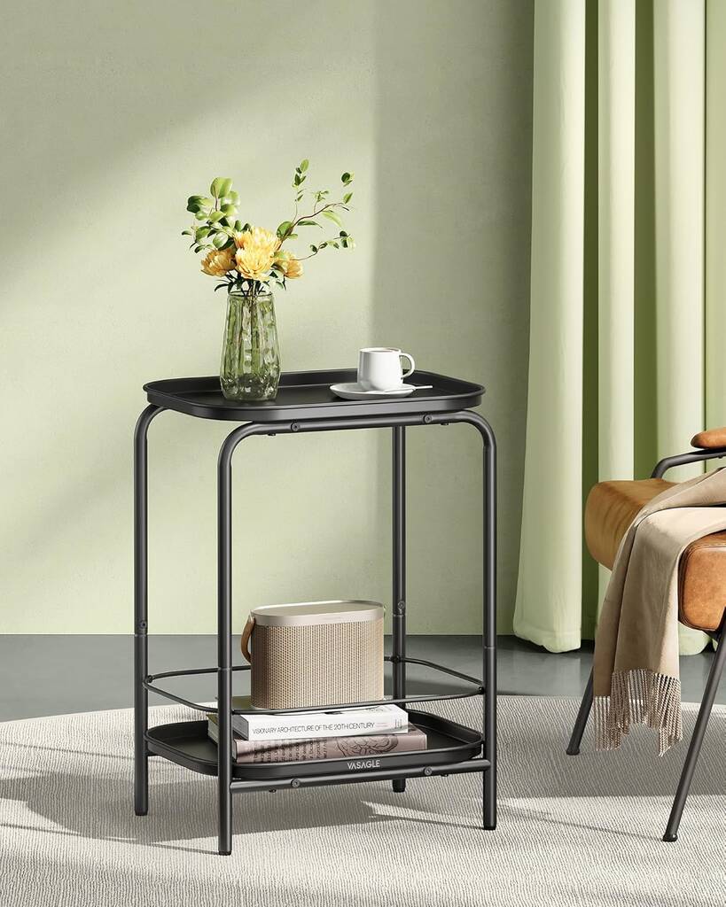 Two Tier Side Table Metal End Table Tray Top