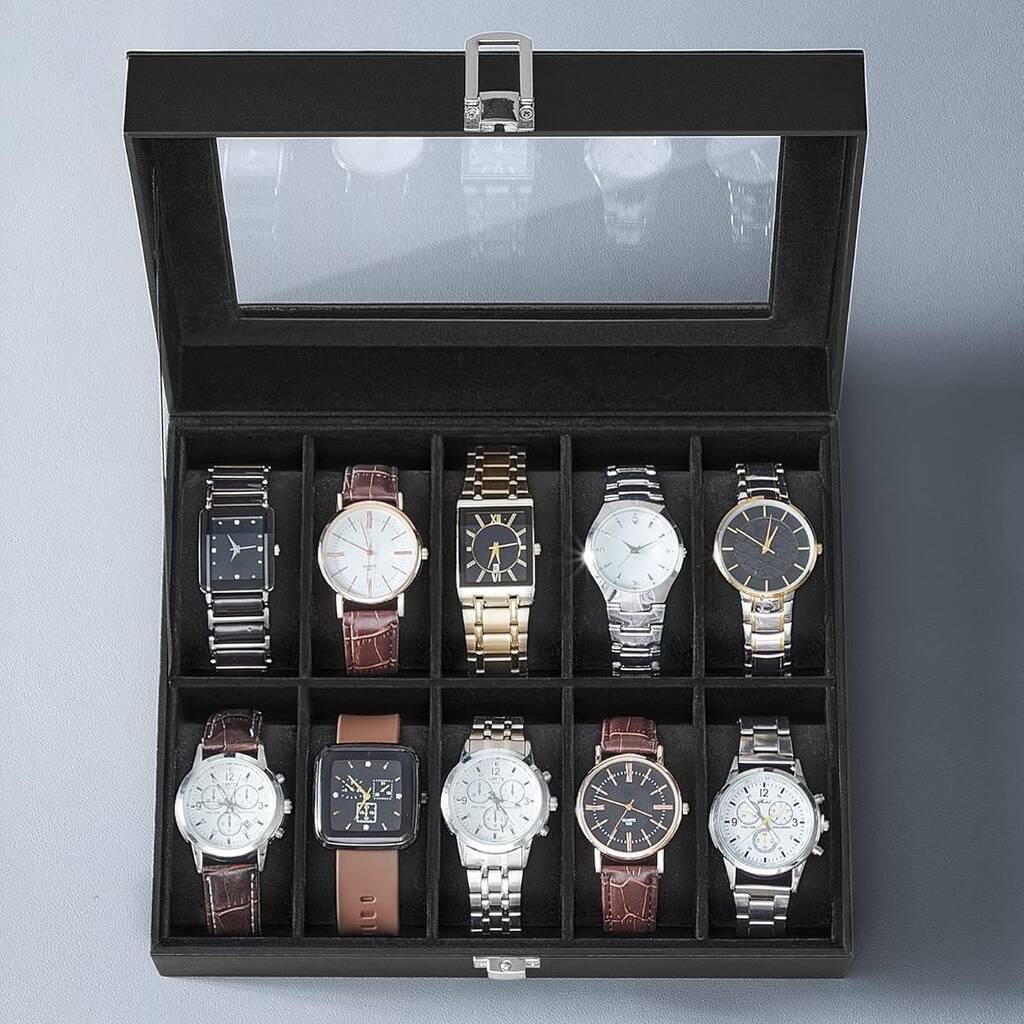Watch Display Box With Ten Slots And Glass Lid