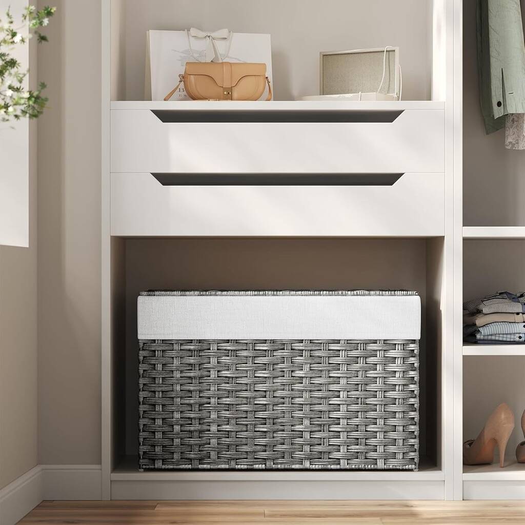 Woven Storage Basket With Lid Blanket Bin
