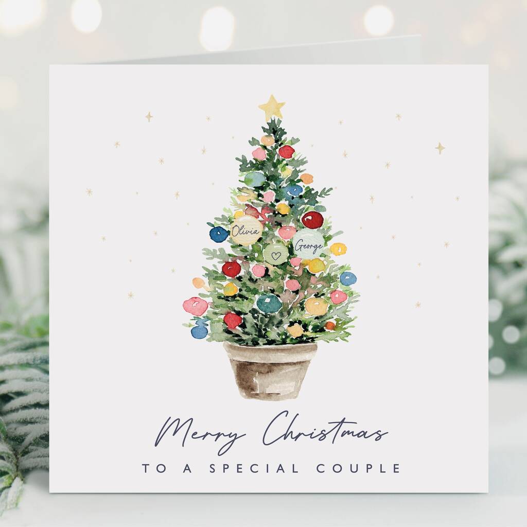 Personalised Christmas Baubles Tree Card For A Couple