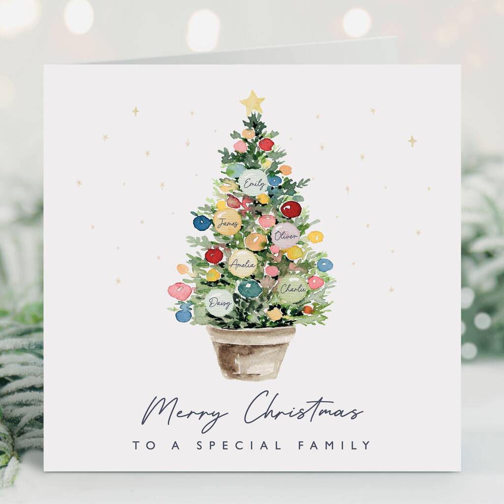 Personalised Christmas Tree Family Card *Up To Eight Personalised Baubles