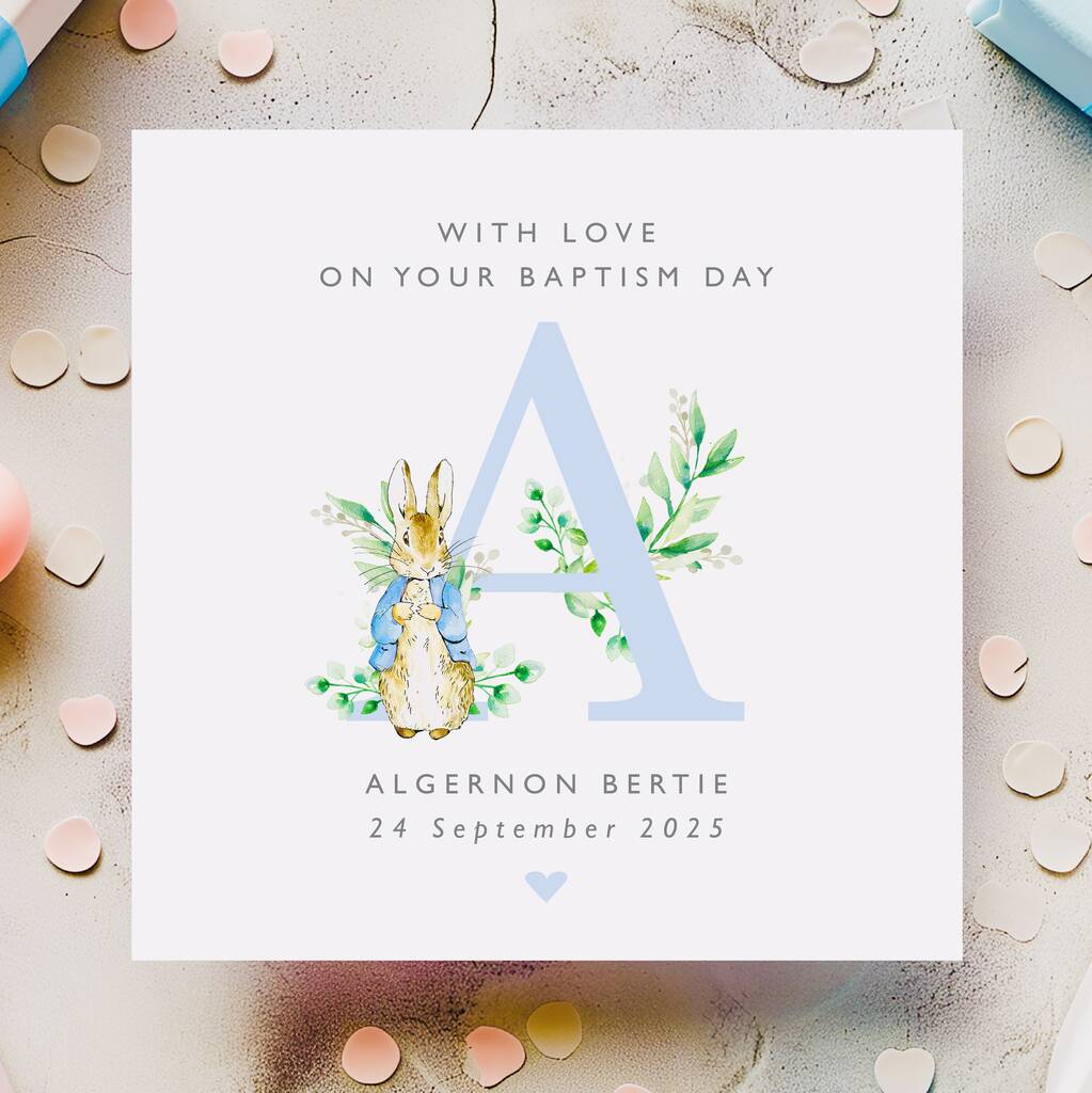 Personalised Peter Rabbit Christening Card *Also Available In Pink