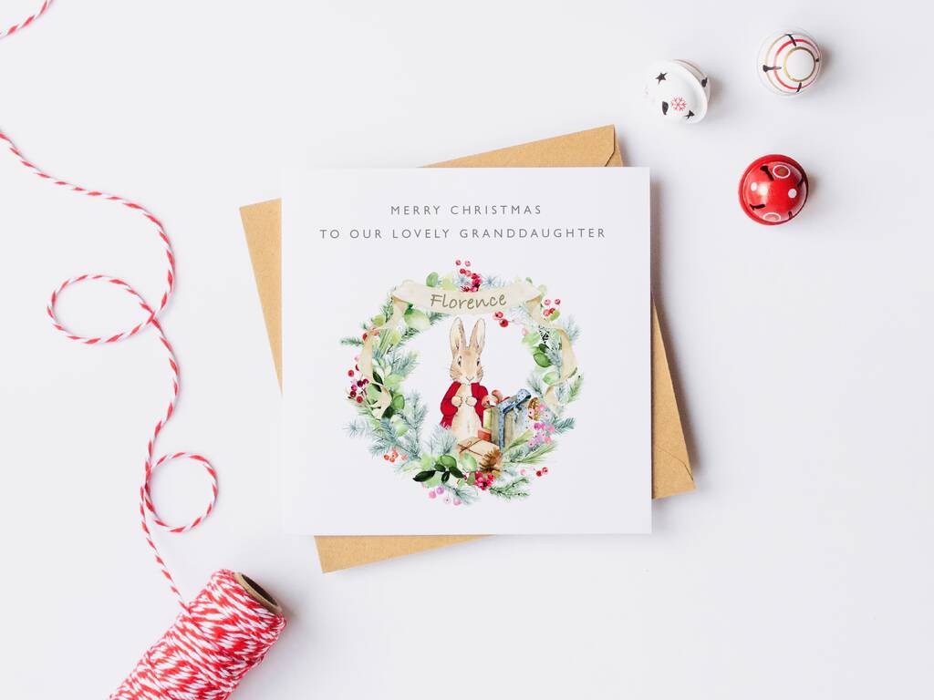 Personalised Peter Rabbit Red Jacket Christmas Card Granddaughter