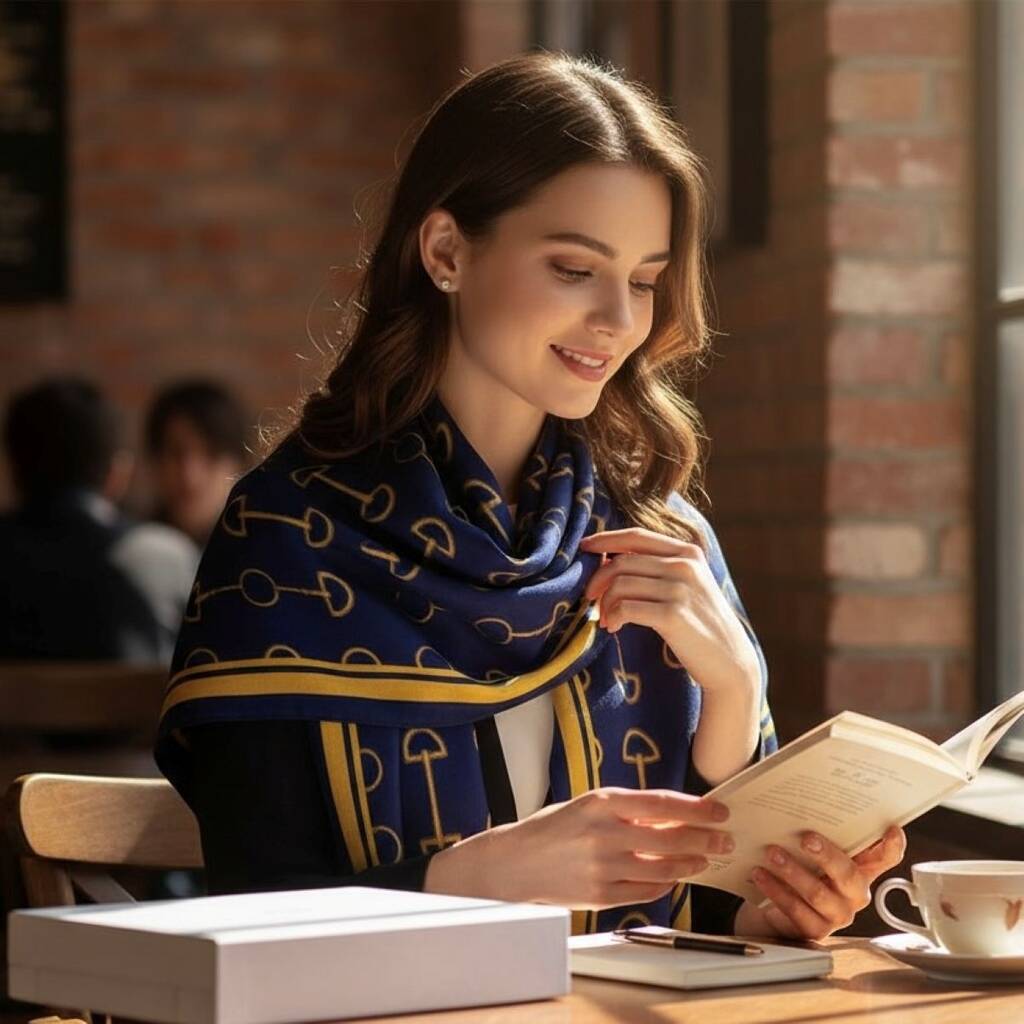 Immerse yourself in the artistry of the design and the exquisite Merino wool. Inspired by a love of all things equine this scarf will bring a touch of refined elegance to your wardrobe. Perfect for heading to the office, meeting friends for brunch or attending a special event, this stunning accessory will effortlessly complement your look.