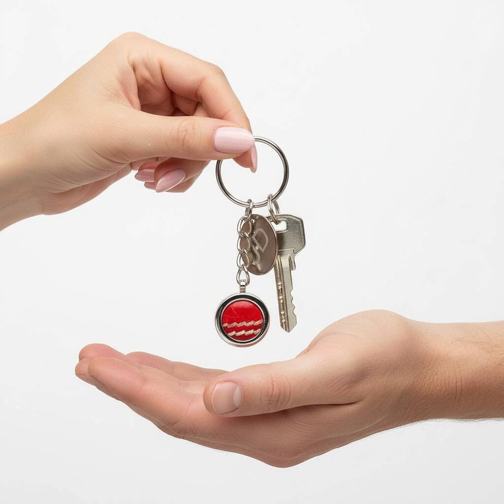 This keychain incorporates leather from a real cricket ball. Handcrafted in the UK to produce a unique look.