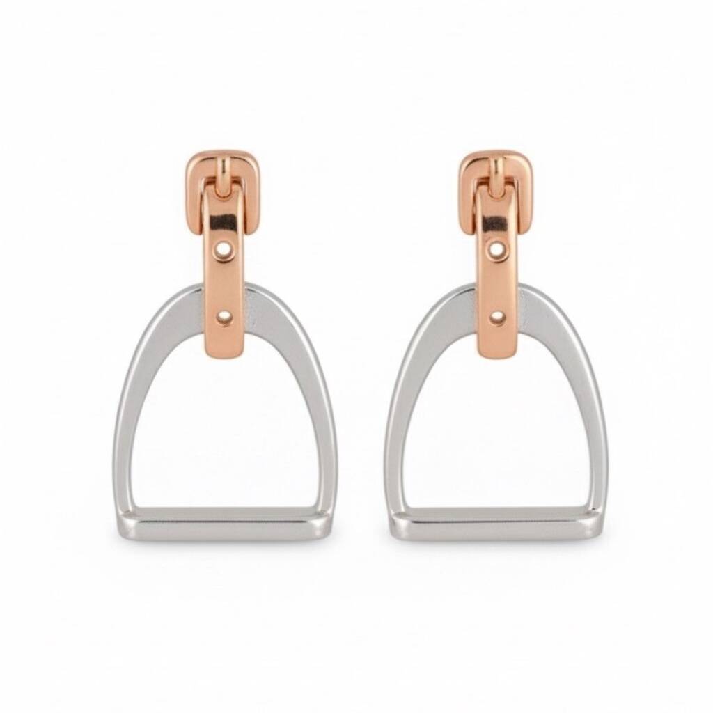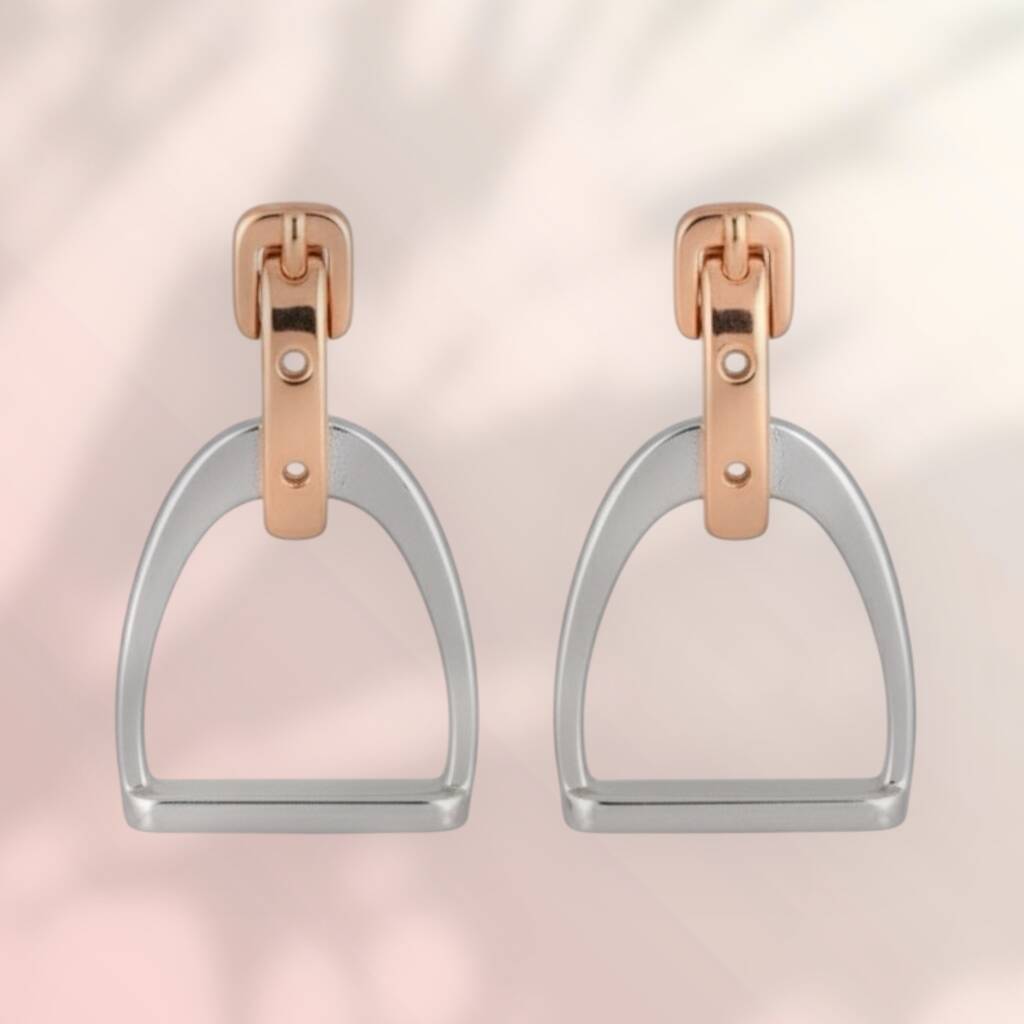 These sphisticated equestrian Personalised Sterling Silver and Rose Gold Stirrup Earrings, bring a perfect blend of luxury and charm.