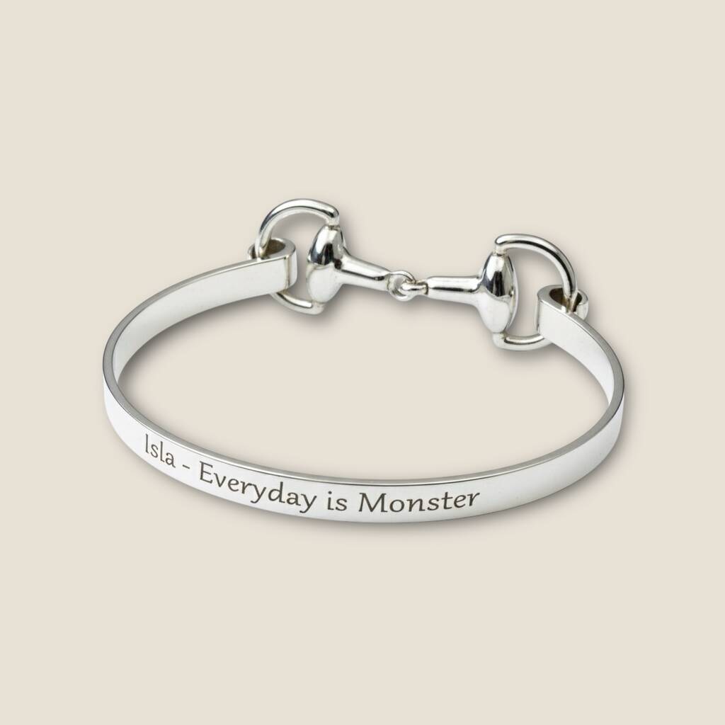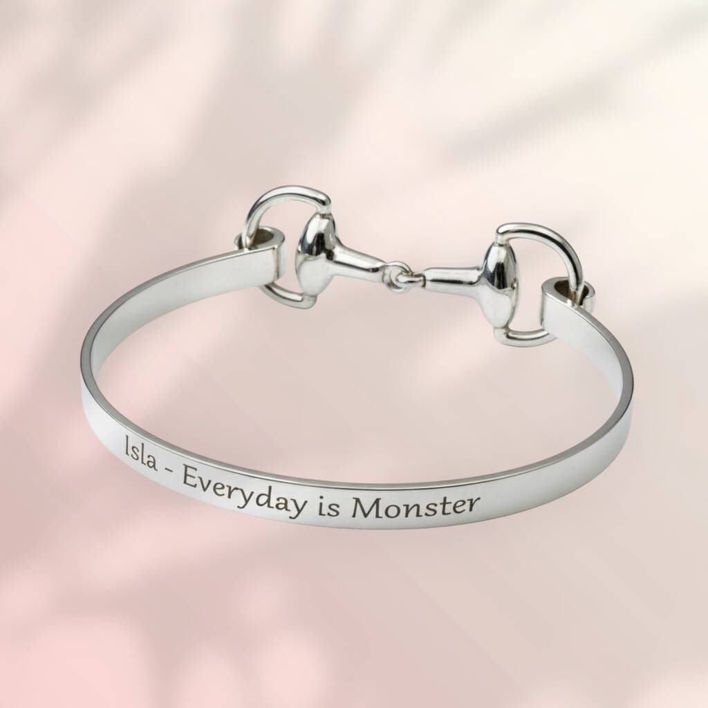 Each bangle is presented in our signature solid walnut gift box, adding to its luxurious appeal and making it ready to gift for birthdays, anniversaries, or special milestones. For a truly unique touch, you can personalise your silver snaffle bangle with any name or message. Unlike most, we engrave your inscription proudly on the outside rear of the bangle – typically worn on the inside of the wrist – for a bespoke equestrian jewellery piece that’s as individual as its wearer.