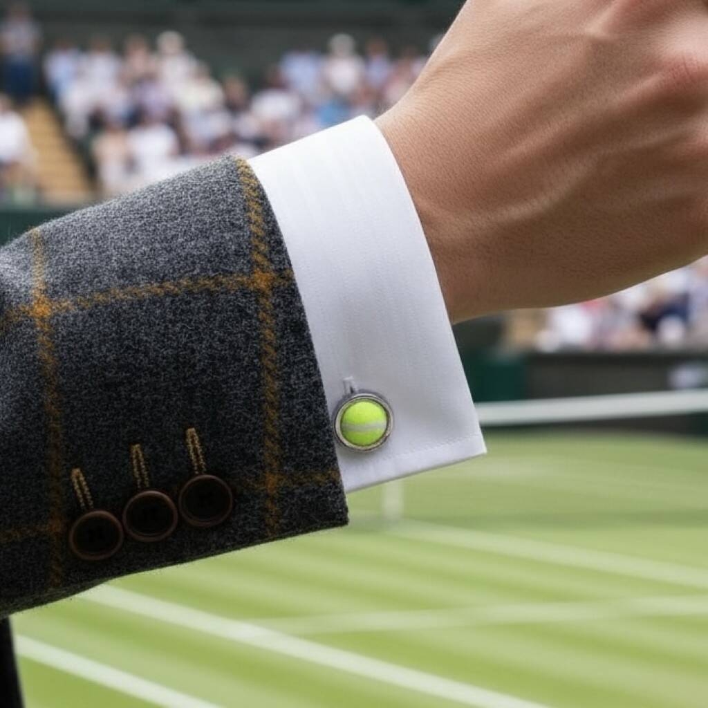 These exquisite cufflinks incorporate real tennis ball material. Handcrafted in the UK to produce a unique look. Set into silver plated heavy weight premium cufflink backs. Each pair of cufflinks is one of a kind and will vary slightly from the ones in the picture, but they will always have the white seam showing so they will be instantly recognisable.