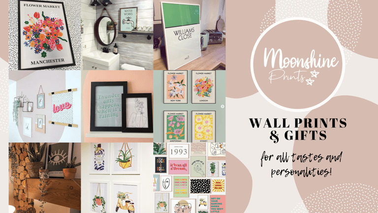 From beautiful minimalistic designs and bold, quirky statement pieces to unique, thoughtful gifts; Moonshine Prints prides itself on offering affordable, on-trend wall prints to suit every taste & personality.