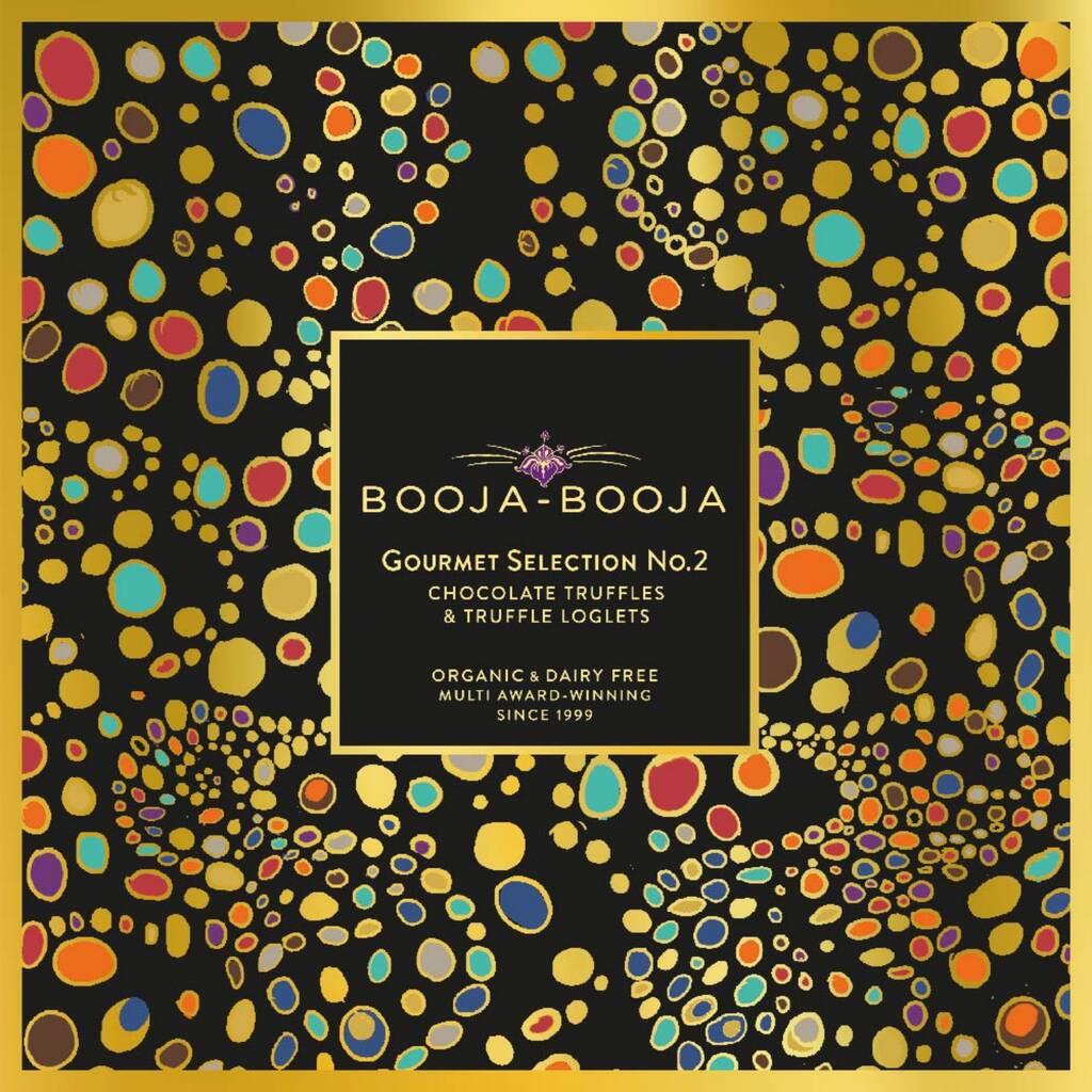 A delicious selection of twenty five chocolate truffles, truffle loglets, and a truffle star. This selection contains Fine de Champagne, Almond Salted Caramel, Salted Caramel Mocha, Rhubarb & Ginger Gin, Chocolate Orange, Hazelnut Crunch, Gingered Toffee Apple and Cherry Cognac.