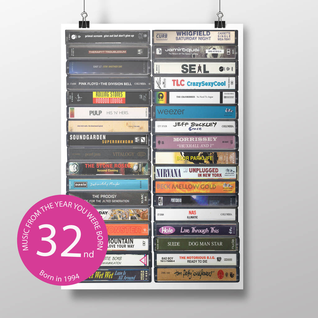 32nd Birthday 1994 Music Print Personalised Gift