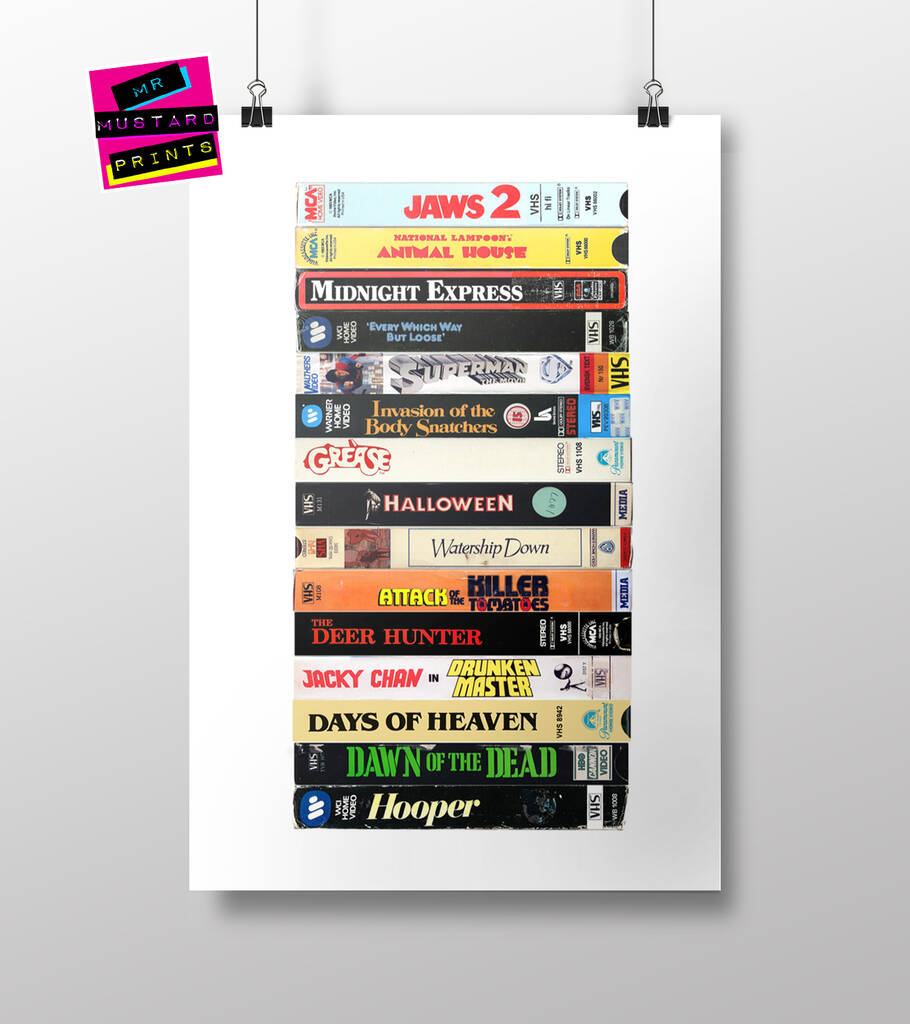 Print can be personalised to include a message on one of the VHS Tapes, some ideas may include: