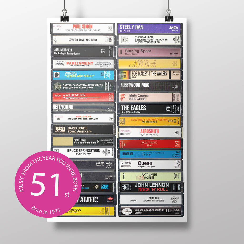 51st Birthday Personalised Print Music From 1975