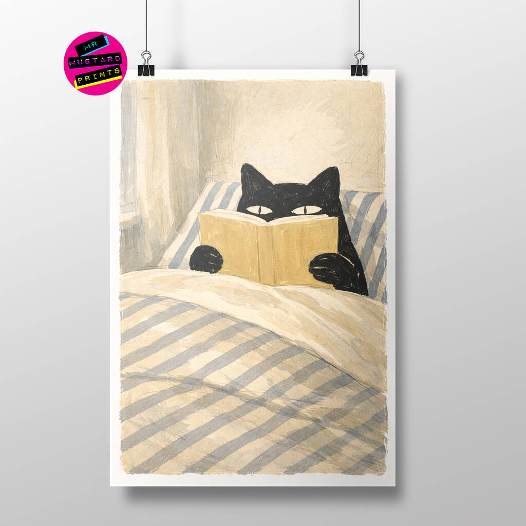 Cat Reading In Bed Print Personalized Favourite Book Gift