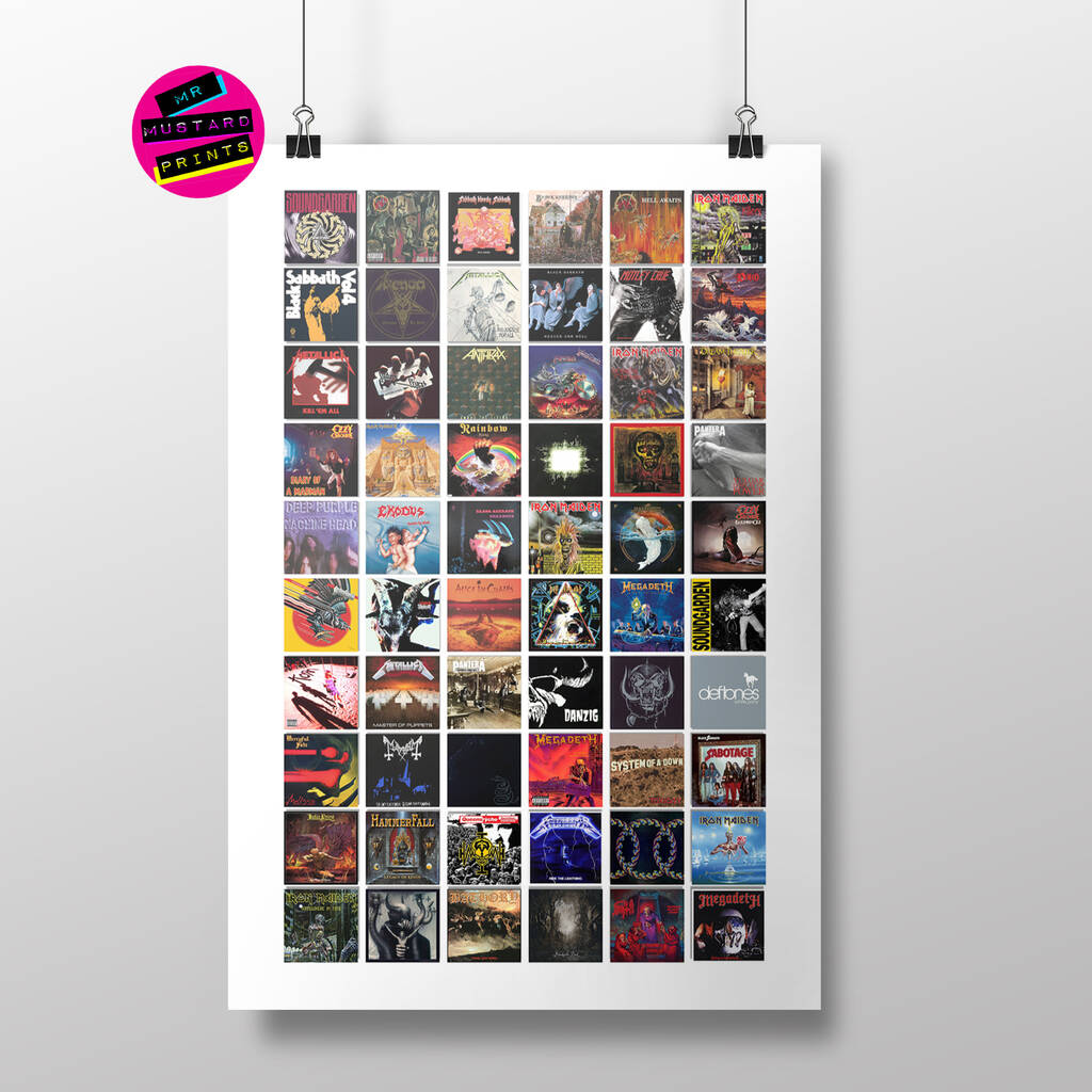 The resulting print is an almost abstract arrangement of colour, image and type and makes for a unique gift idea for any Metal head