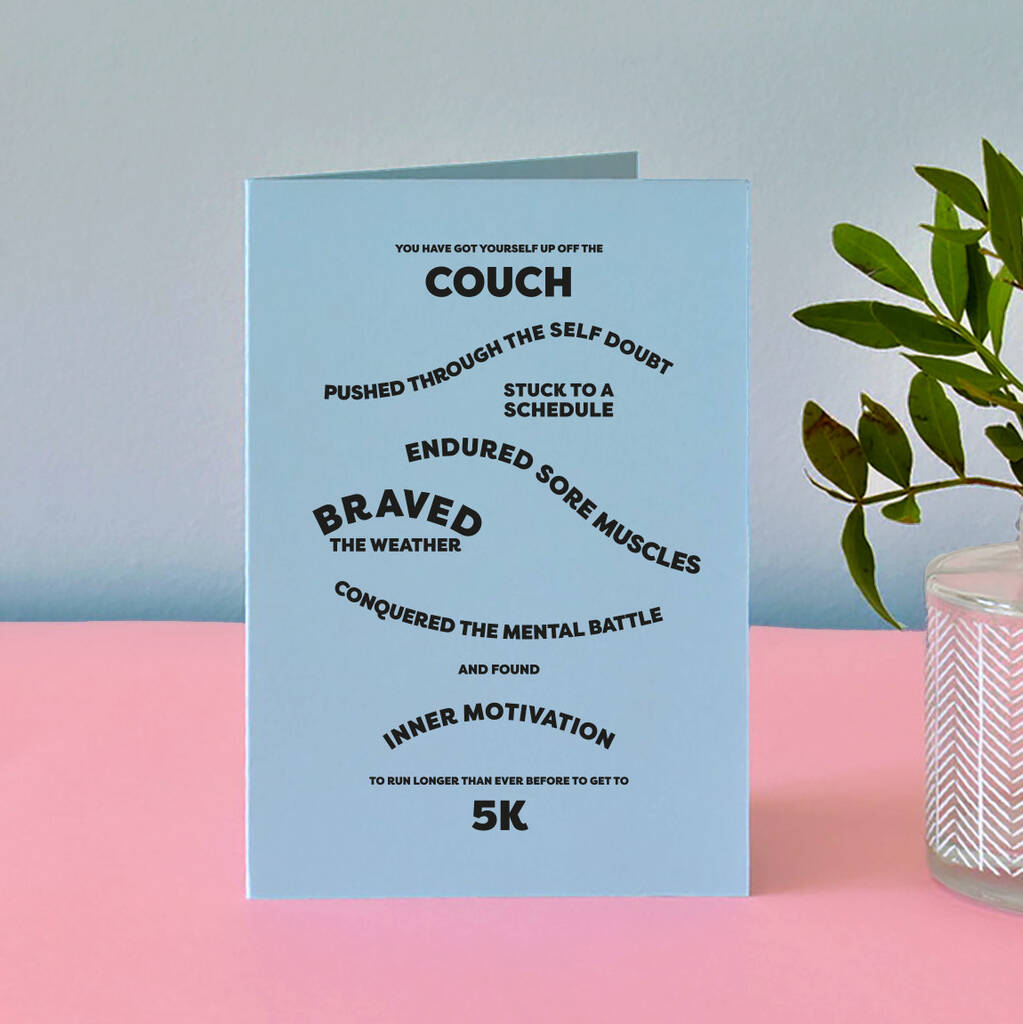 Cheering someone on as they smash their first 5K?This card is a thoughtful way to mark the dedication and grit it takes to reach that milestone. Whether it’s a friend, partner or family member completing the Couch to 5K challenge, this card celebrates their hard work and determination.