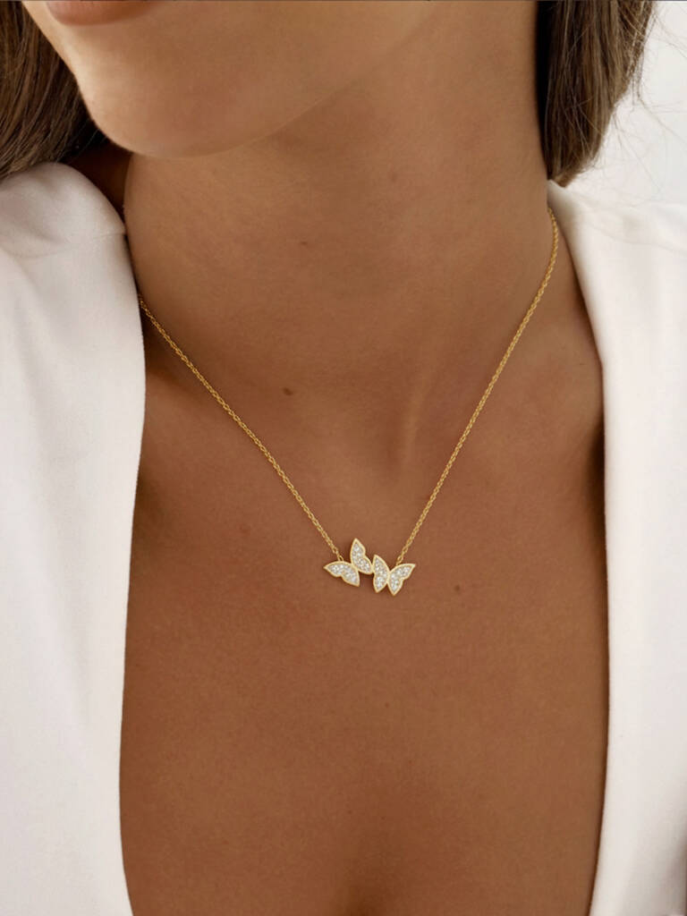 Elegant and meaningful, this dainty necklace features two butterflies in flight. It’s the perfect everyday piece or thoughtful gift to mark a new beginnings