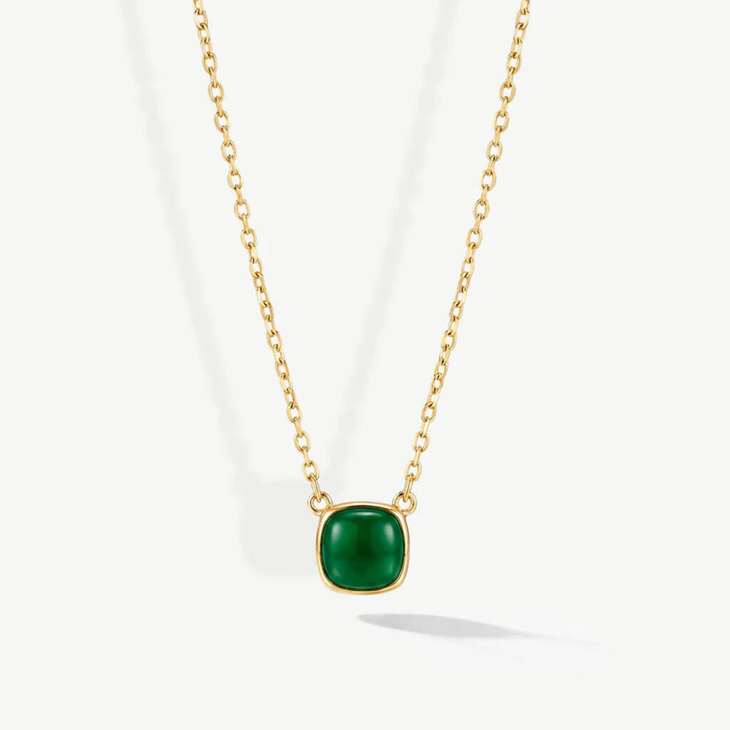 Gold Emerald Green Square Necklace
