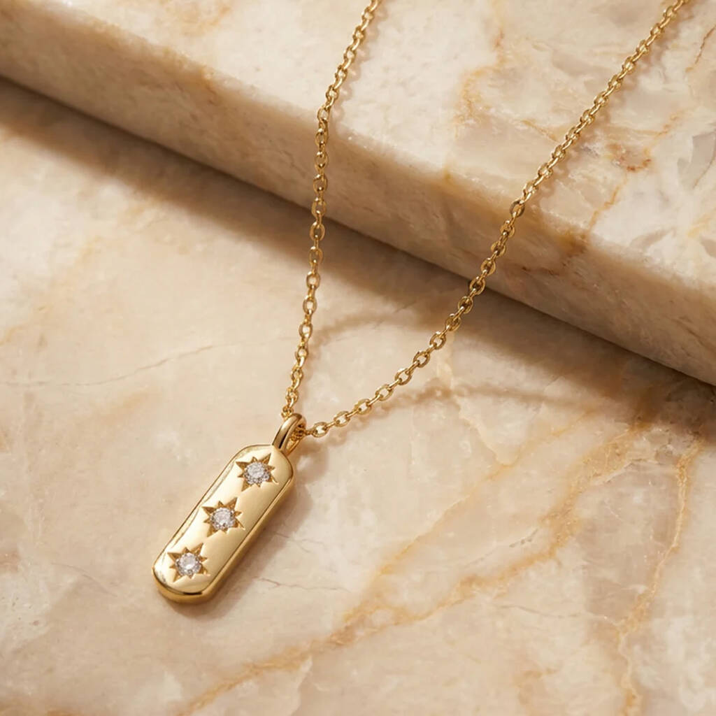Gold Or Silver Vertical Bar Necklace With Three Stars