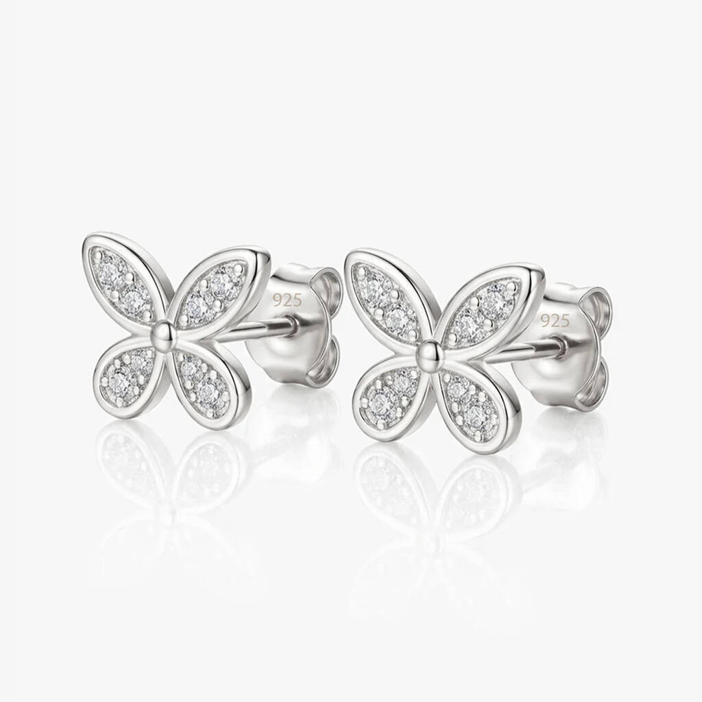 Rose Gold Or Silver Butterfly Stud Earrings With Stones