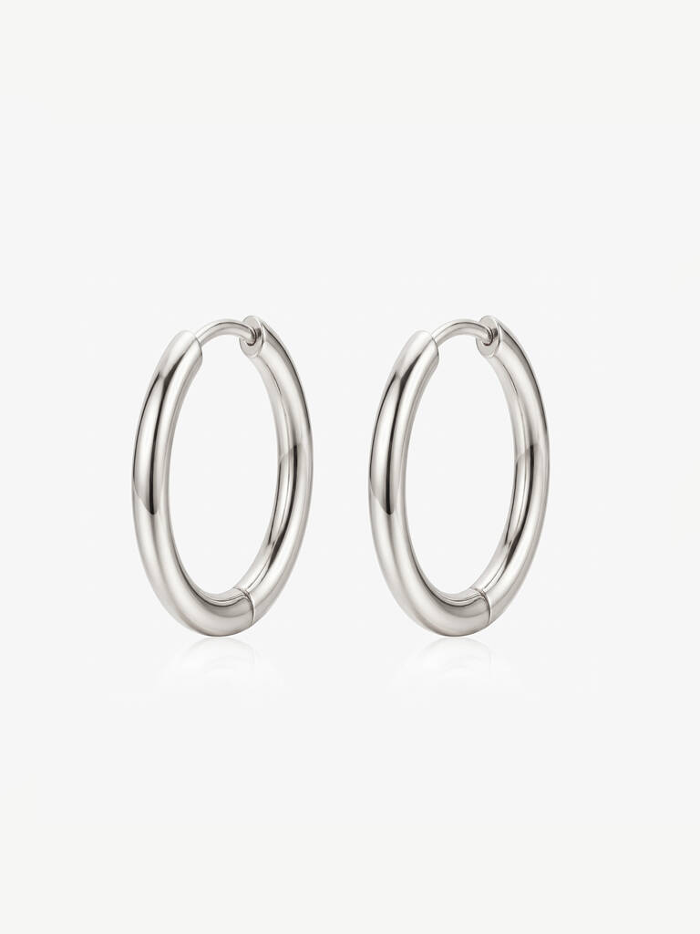 Silver Or Gold Solid Hoop Earrings, Women's Jewellery