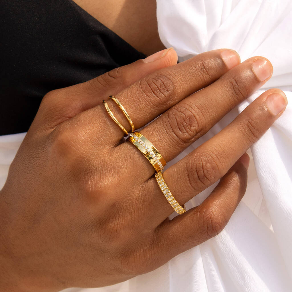 Women's Sterling Silver Ring Band With Sparkling Cubic Zirconia In 18k White Gold
