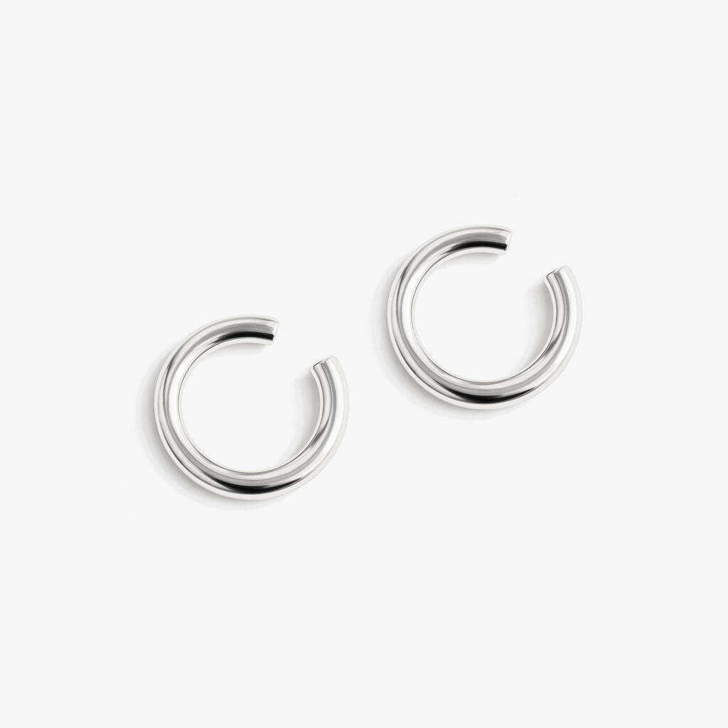 Women's Silver Thick Ear Cuffs, Adjustable, Pair In 18k White Gold