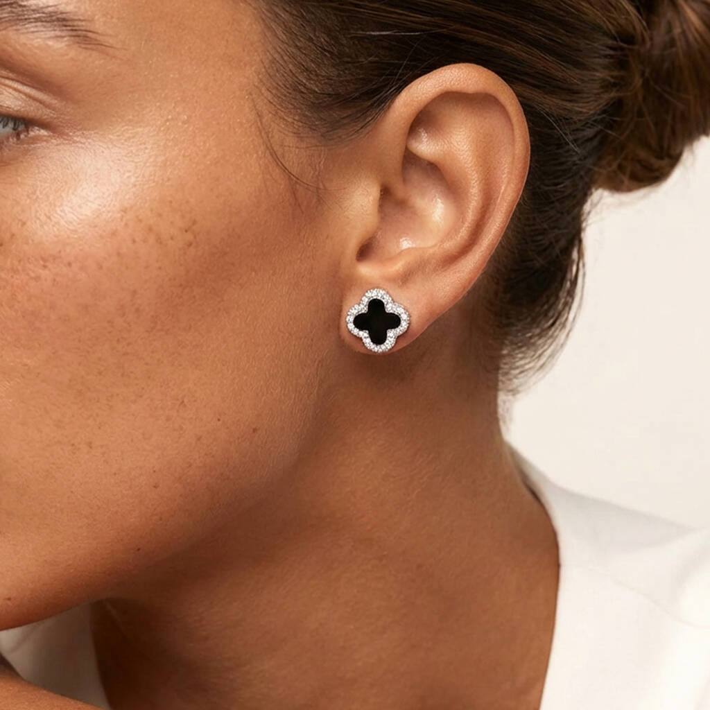 Women's Black Clover Stud Earrings In Sterling Silver