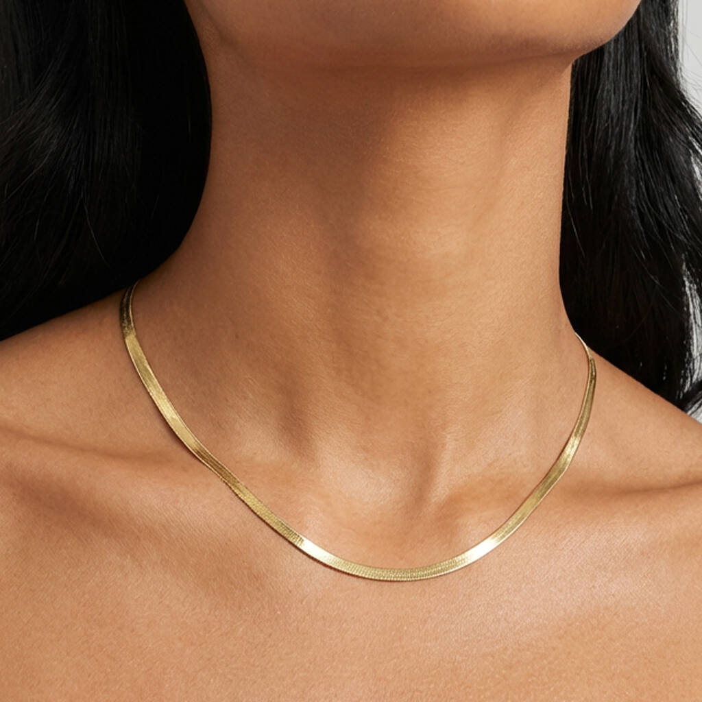 18k Gold Or Silver Women’s Herringbone Chain Necklace