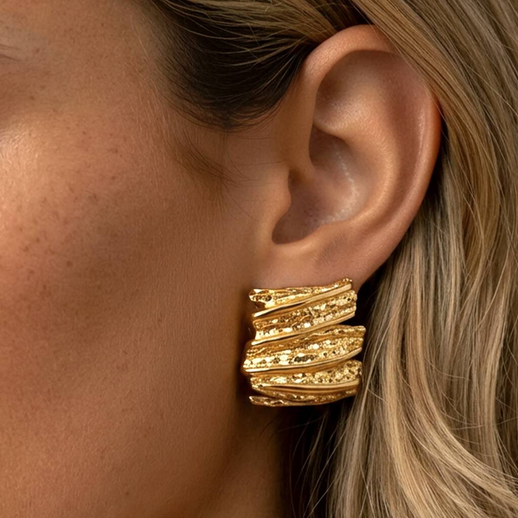 Women’s Large Rectangular Textured Stud Earrings In 18k Gold, Statement Jewellery