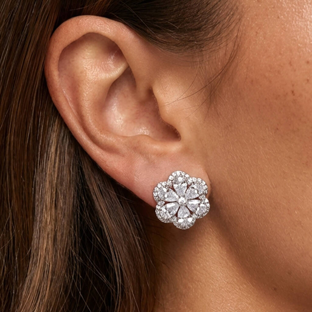 Women's Sterling Silver Bridal Flower Stud Earrings, Wedding Jewellery