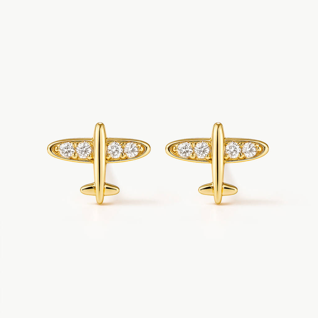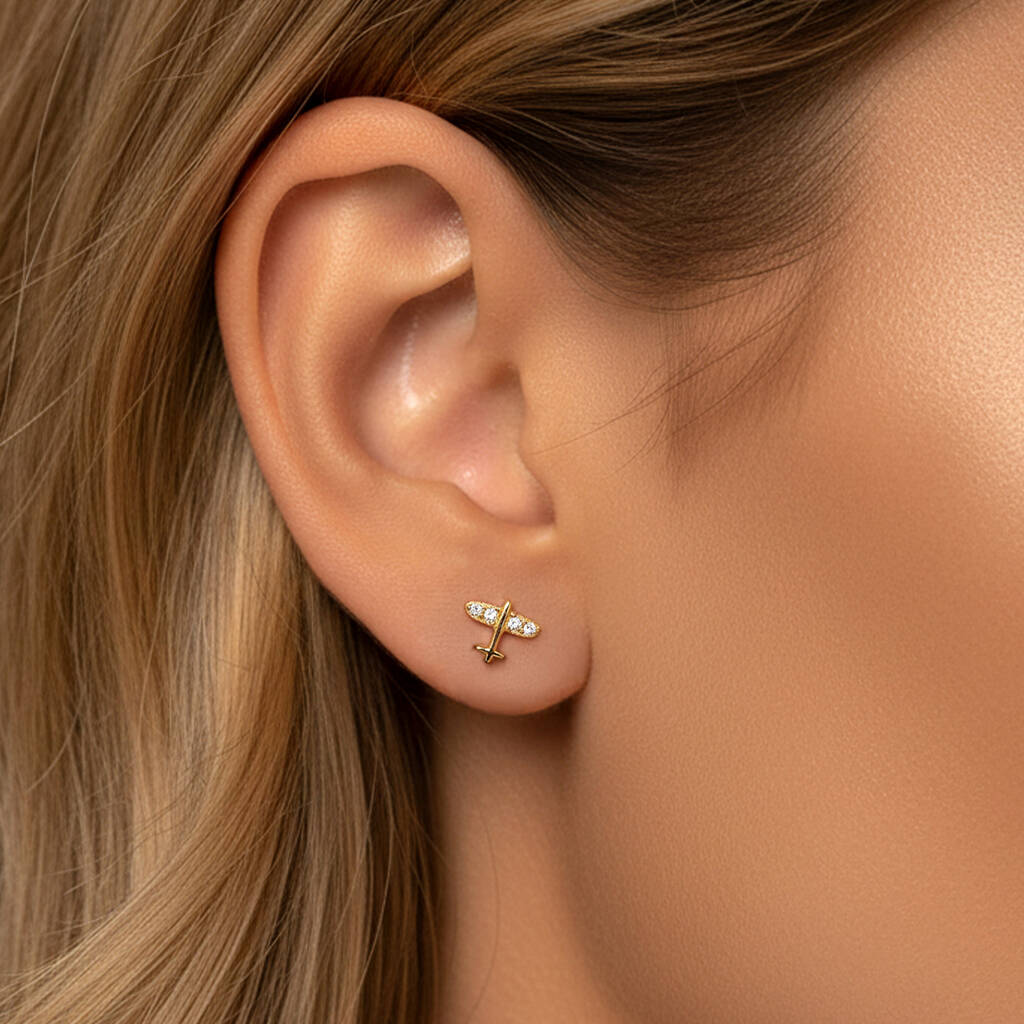 Gold Or Silver Women's Tiny Airplane Stud Earrings