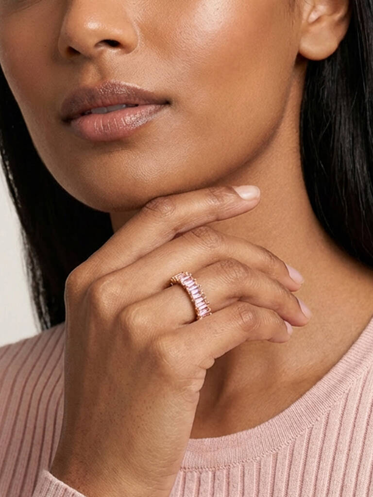 Women's Thick Stacking Ring With Pink Stones
