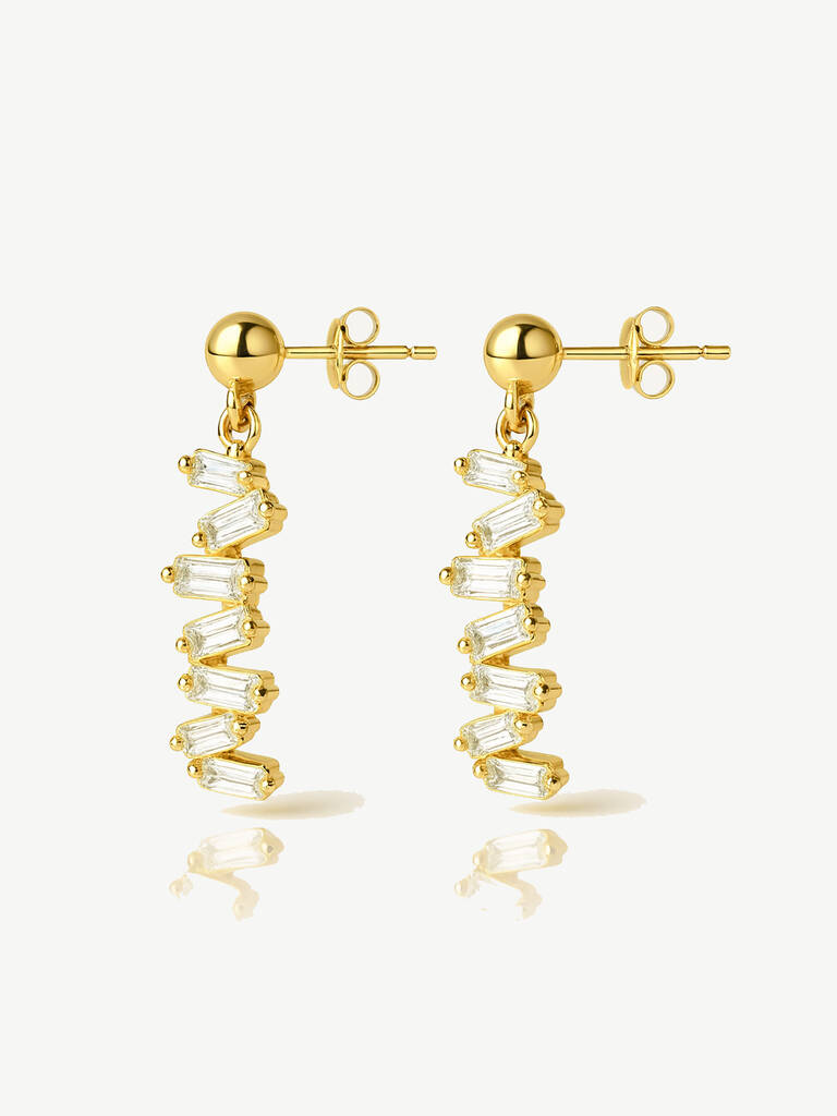 Dangle Earrings With Baguette Stones In 18k Gold, Women's Jewellery