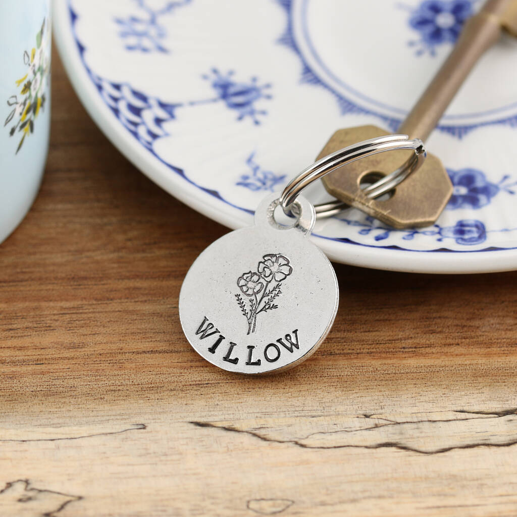 Personalised Birth Flower Pewter Keyring Birthday Gift For Her